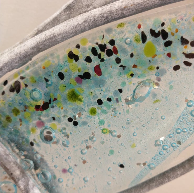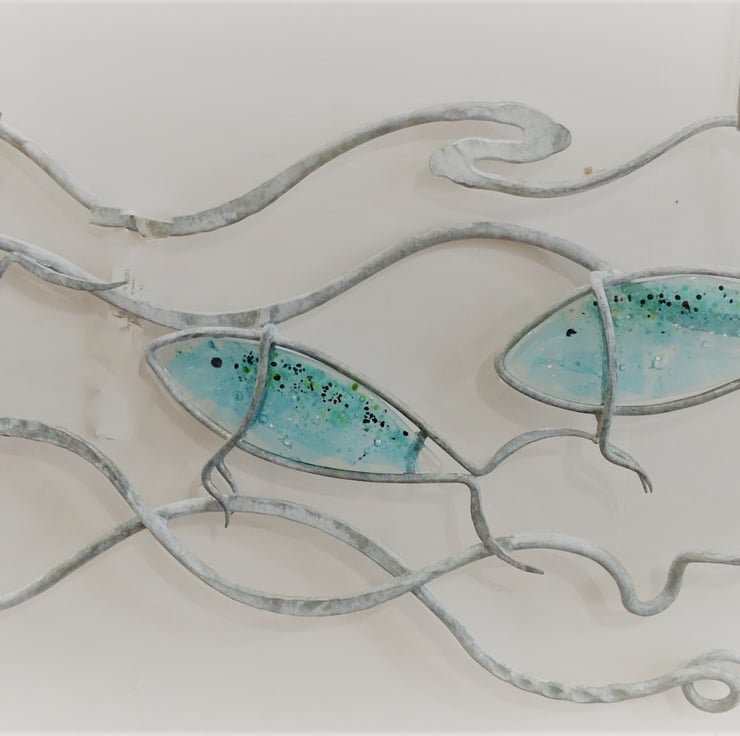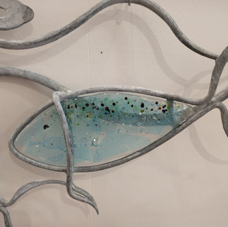 This wall panel of fish under the sea would suit any wall indoors or out. I love colour but am not so keen on painting steel so I use fused glass for an injection of colour. The galvanised steel will not rust and the glass will not fade, the whole piece can withstand whatever the weather throws at it.