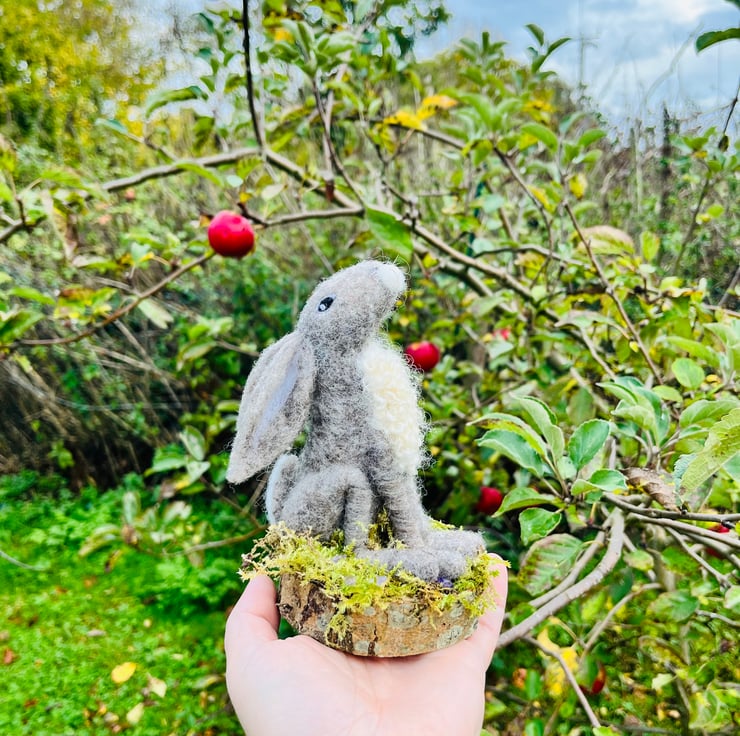 I am extremely lucky to live in the sunny Suffolk countryside surrounded by fields. This needle felted hare was inspired by the hares I watch from my kitchen window.