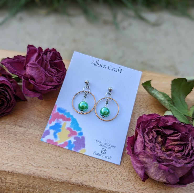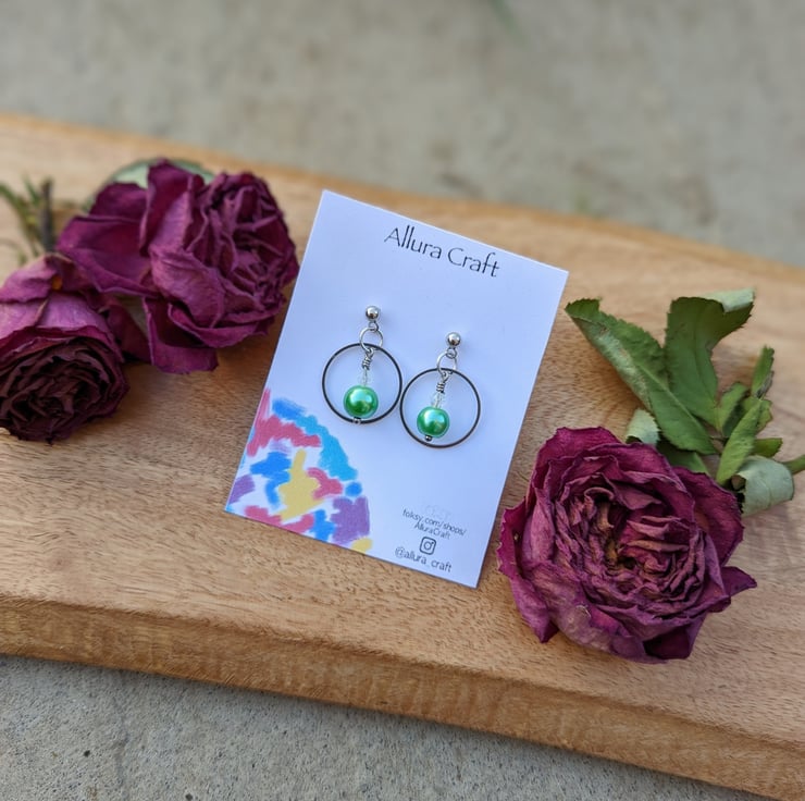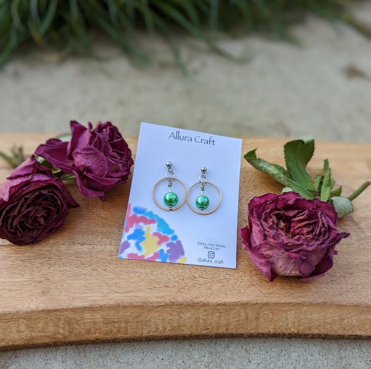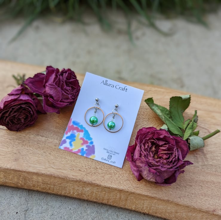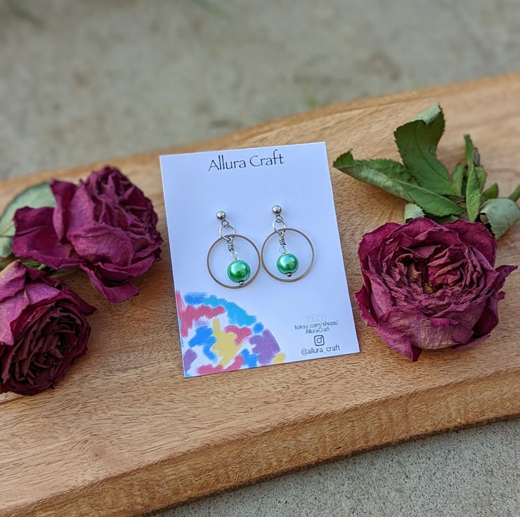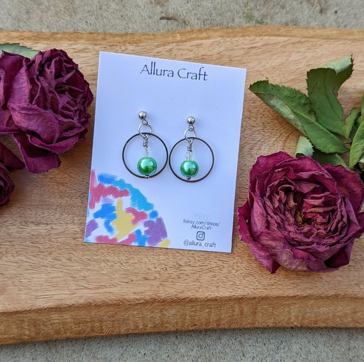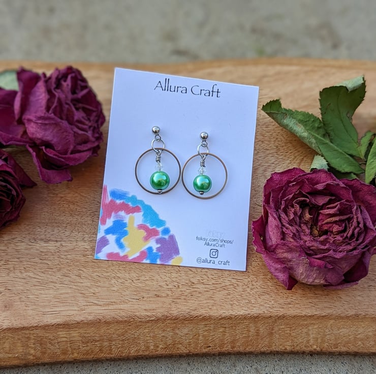Turquoise Green Pearl with Complimentary Top Mounted Clear Bicone Bead which catches the light and adds an elegant twinkle