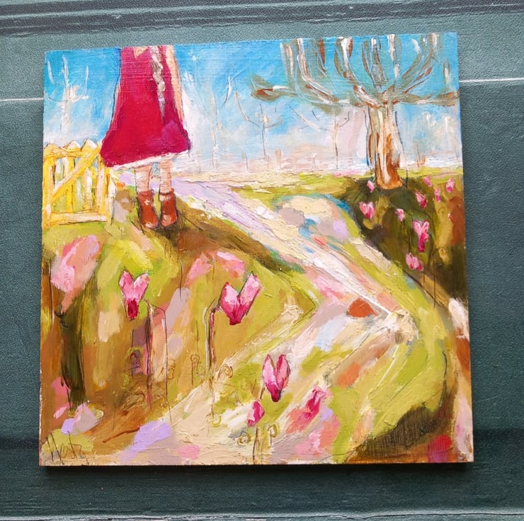 This is a sweet painting of beautiful soft pinks with texture from the brush work. Unframed 30 cm square painted on reclaimed wood. W08ould look good in a wooden modern white frame. Rich texture and a contemporary feel. One off original . I have white frames if you need one