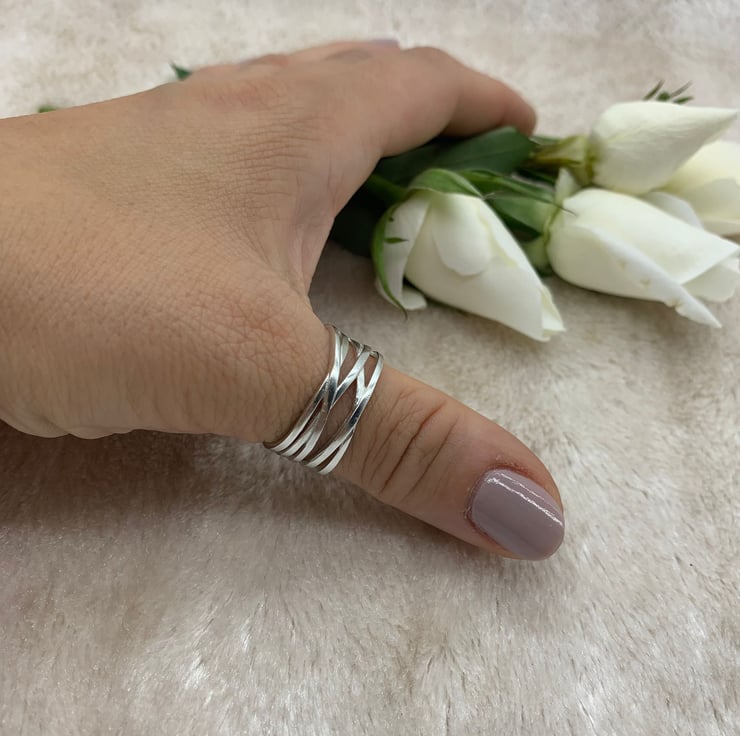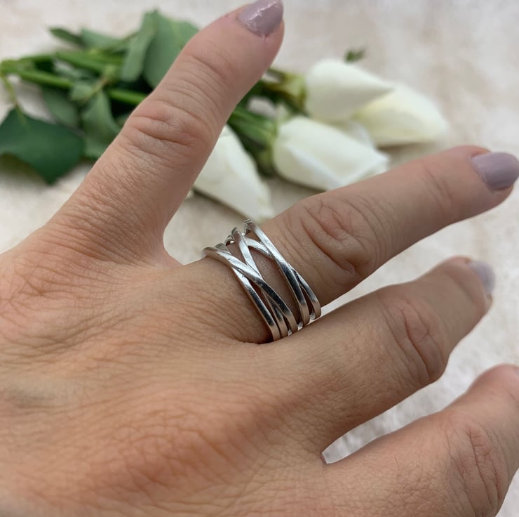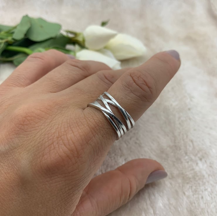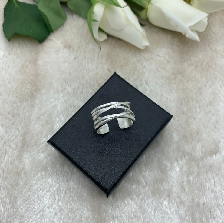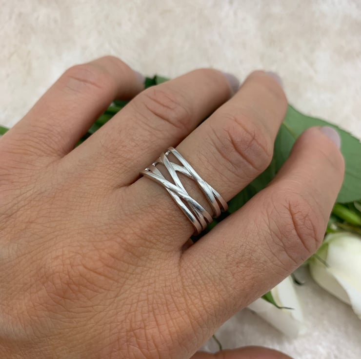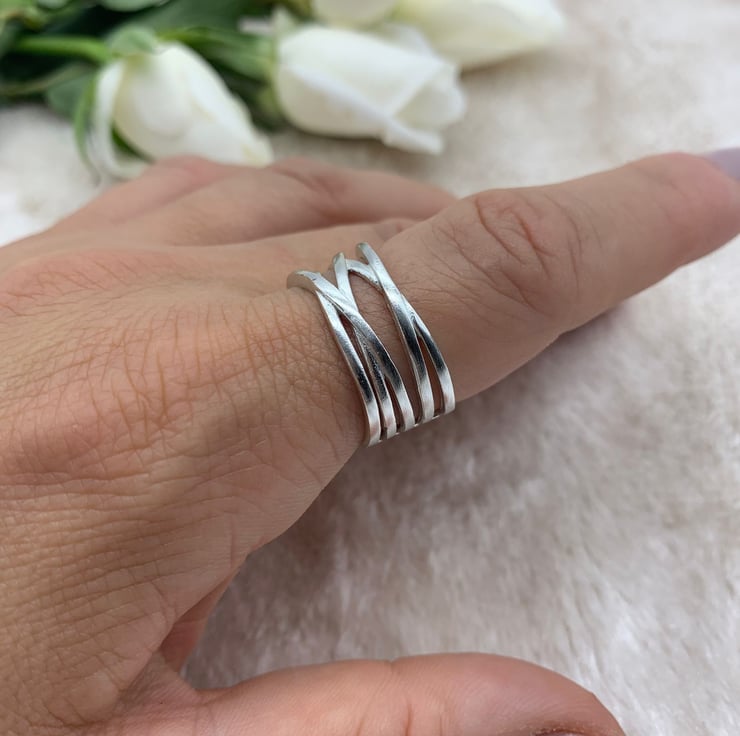 Boho inspired statement ring, crafted in with intricately detailed intertwining bands of 925 Sterling Silver (hallmarked).