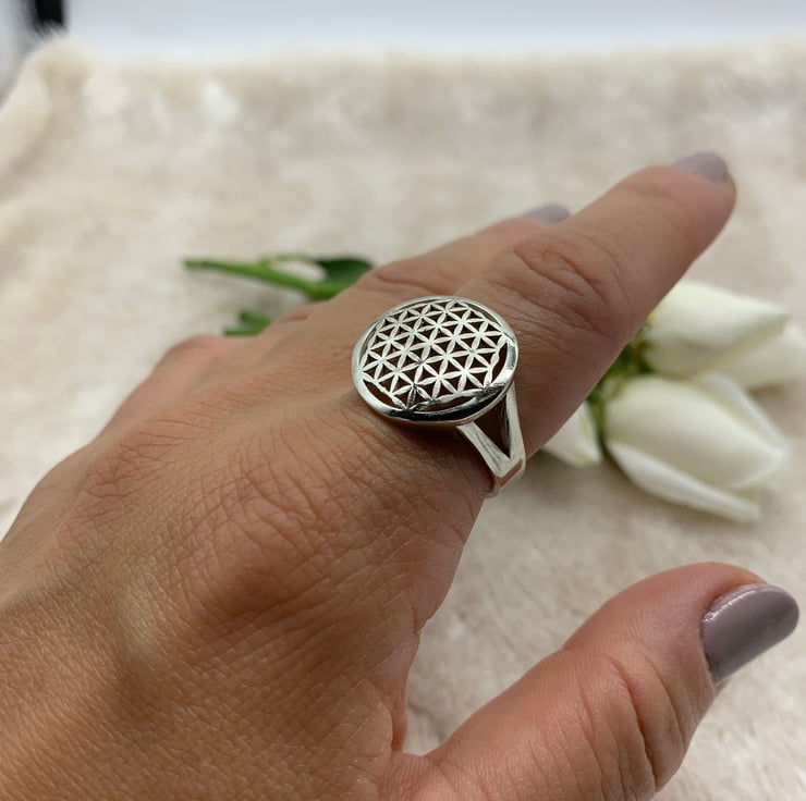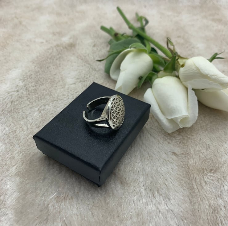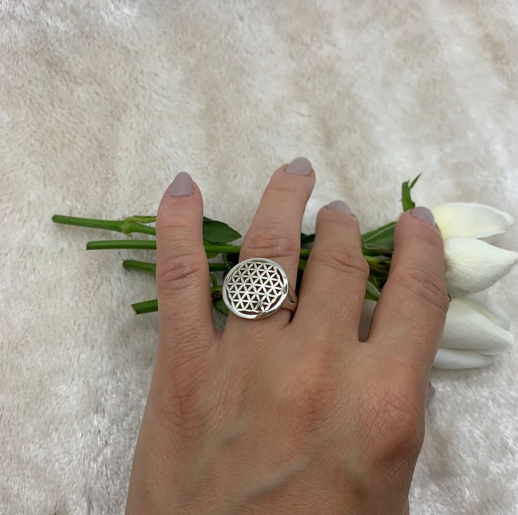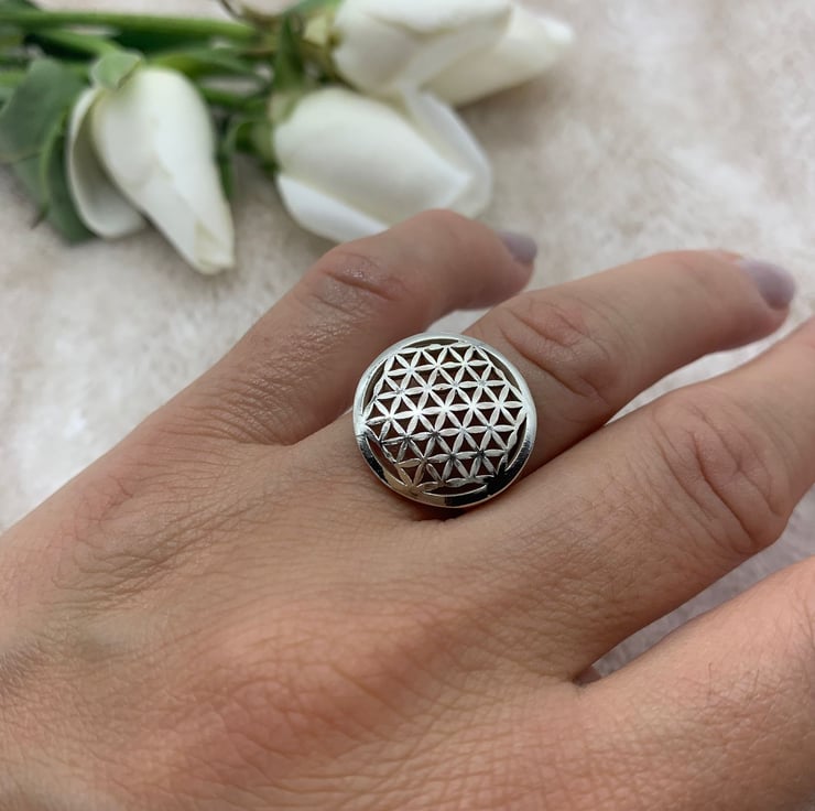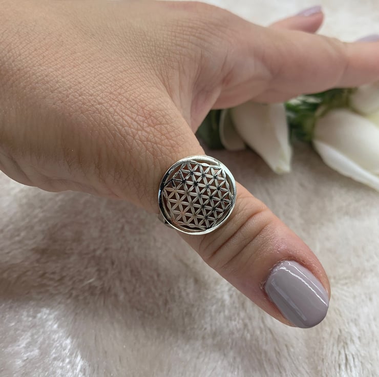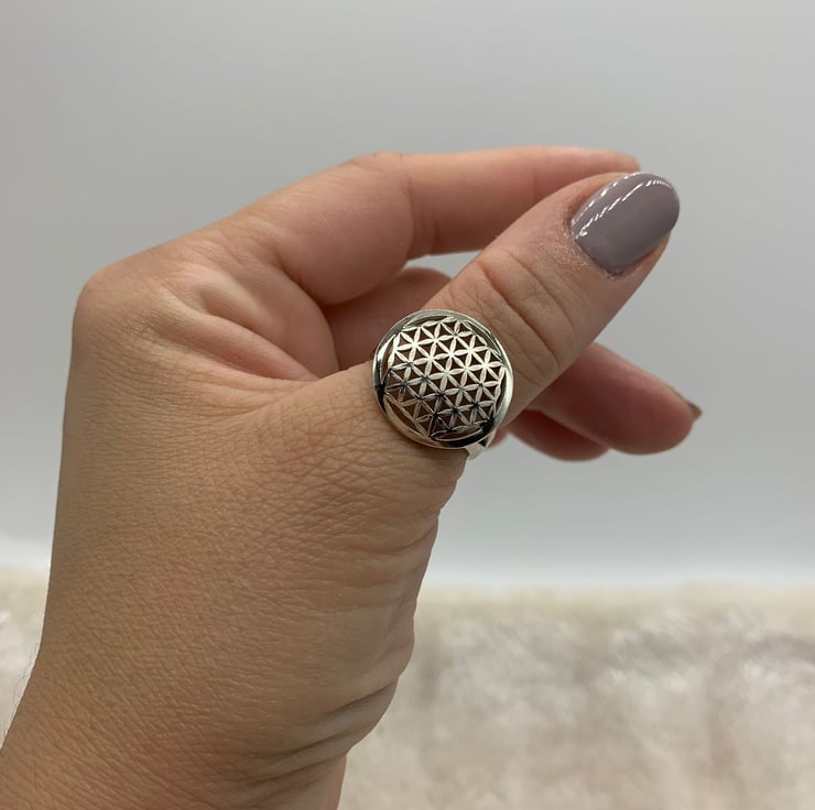 Silver Flower of Life Signet Ring
