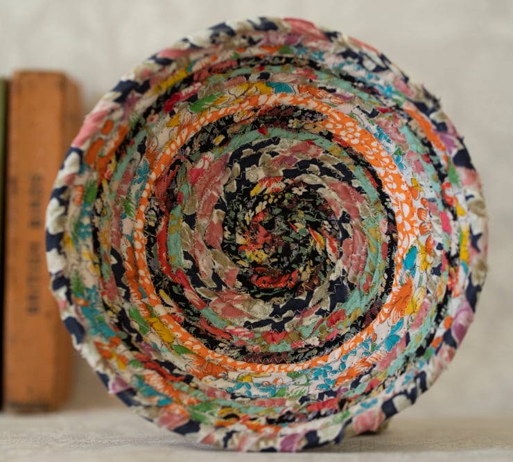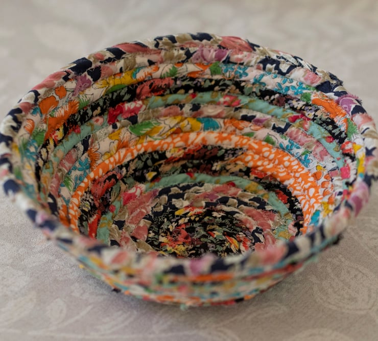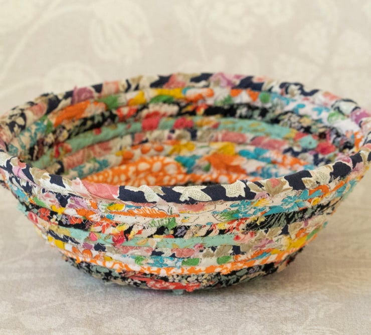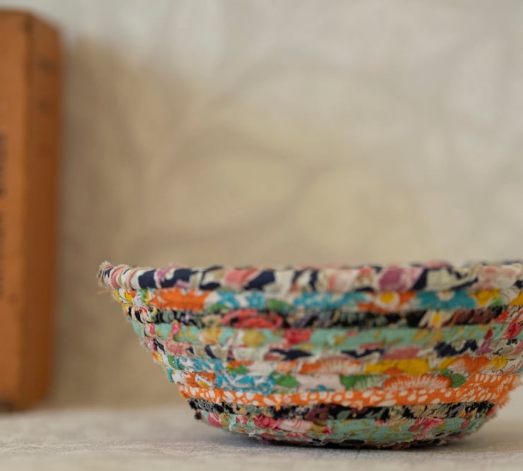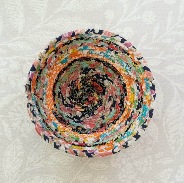 This pretty and cheerful little fabric bowl would be useful for keeping bits and pieces in, but can also be used as purely a decorative piece.