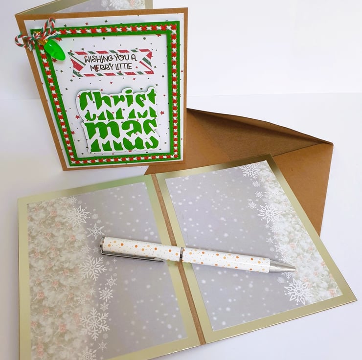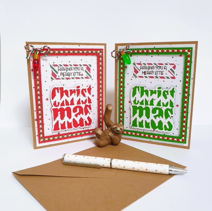 This gorgeous handmade Christmas Card comes in two colour schemes, red or green.