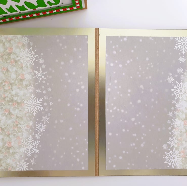 The inside of the card has been layered with quality Christmas themed paper, surrounded by a gold mirror card border, and provides a smooth writing surface. It has been left blank, so you can add your own personal message or wishes.