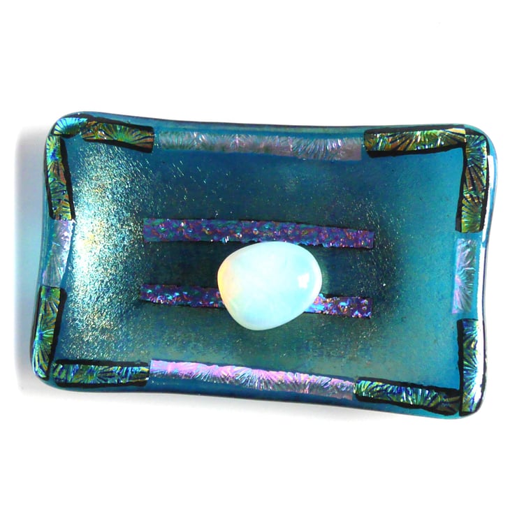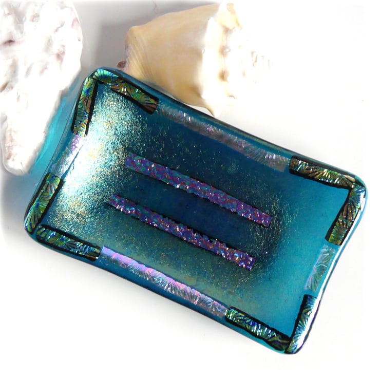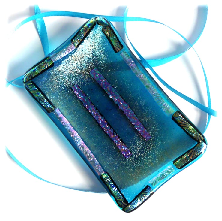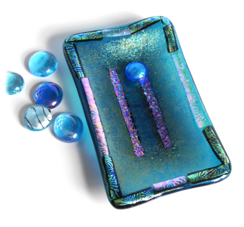 This is made on a soap dish mold but there is no reason why it can't simply be an attractive little dish in its own right, for trinkets or just an ornament. I find my fused glass pieces are very tactile.