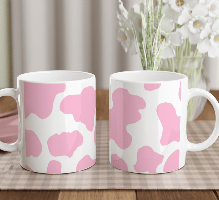 Pink Cow print standard sized Coffee mug with gift box
