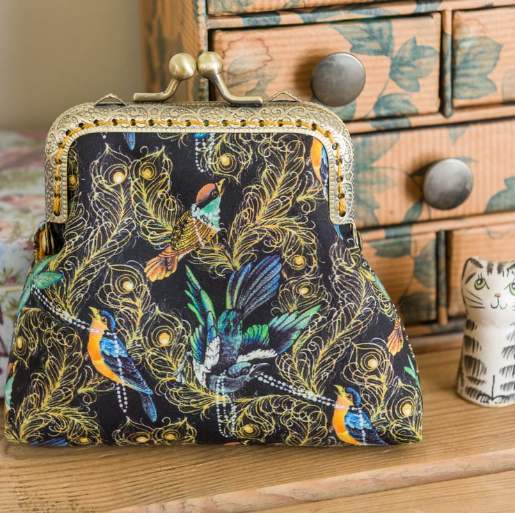 Coin purse made with Joy and Sorrow bird print Liberty Lawn and golden lining