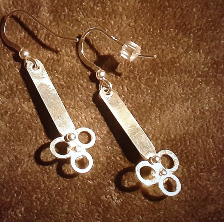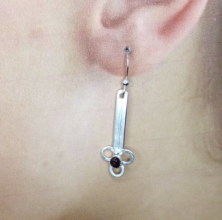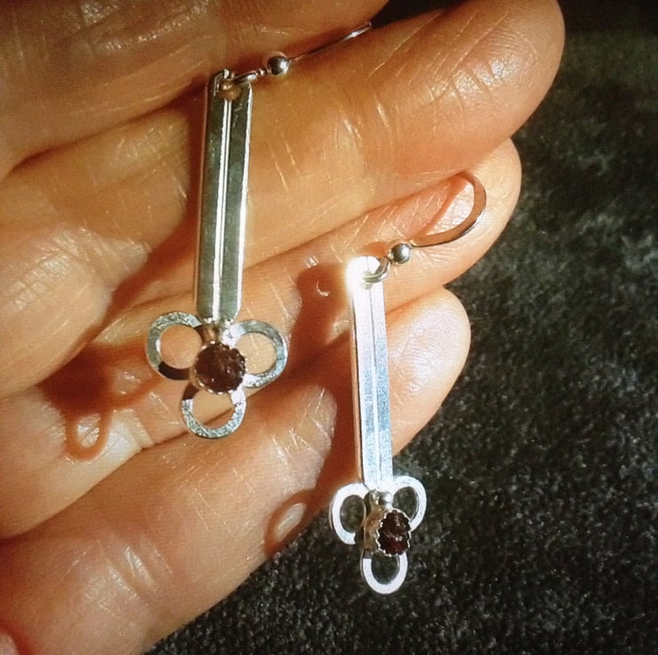 Thames garnets plucked from the muddy foreshore and set in sterling silver to make these lovely trefoil dangle earrings.