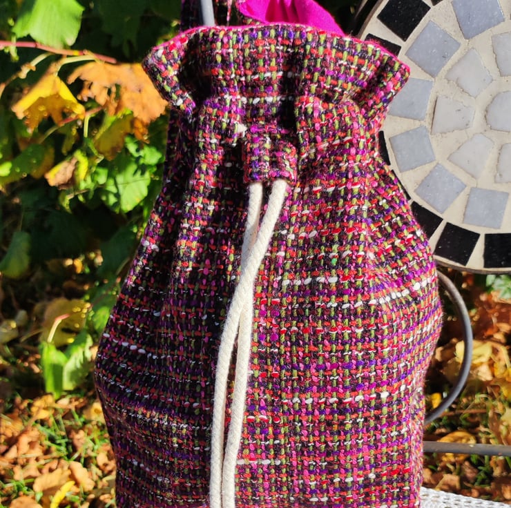 The half rucksack is made from a woven fabric and measures about 28cm by 36cm.