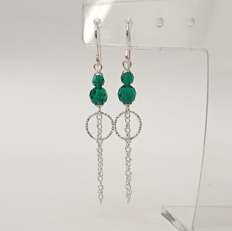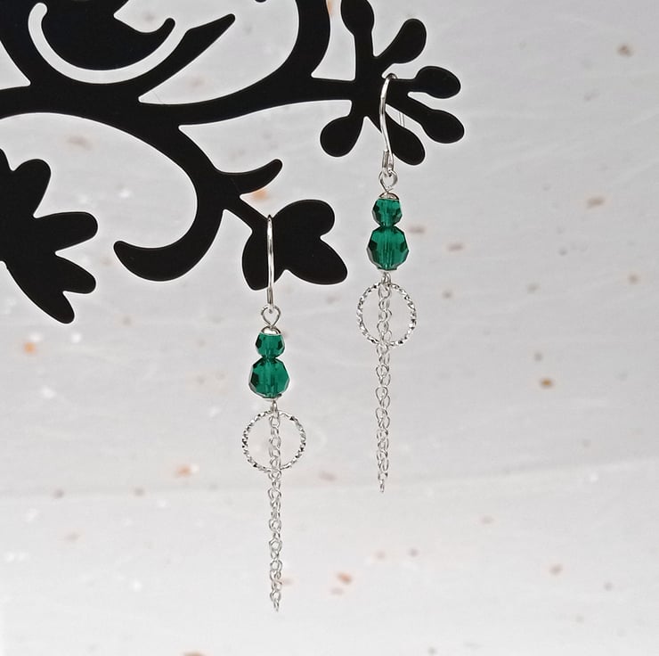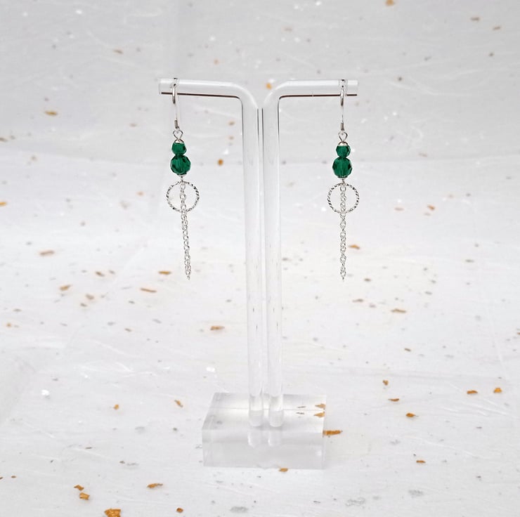 These gorgeous earrings would make a great gift for under £10. Emerald crystal beads hang from sterling silver ear hooks, complete with sterling silver chain and a ring. They are part of a collection of bead earrings, including a shorter pair of emerald crystal earrings.