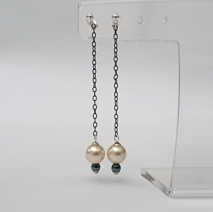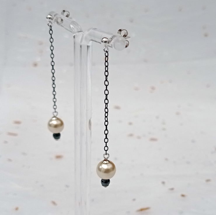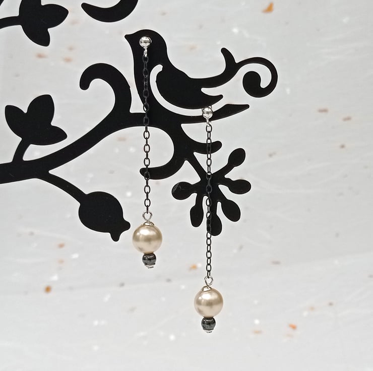 Are you looking for a low priced but gorgeous pair of earrings? I have oxidised recycled sterling silver chain (to change it to a black finish) then added pearl and haematite beads. They are part of a collection of low priced bead earrings.