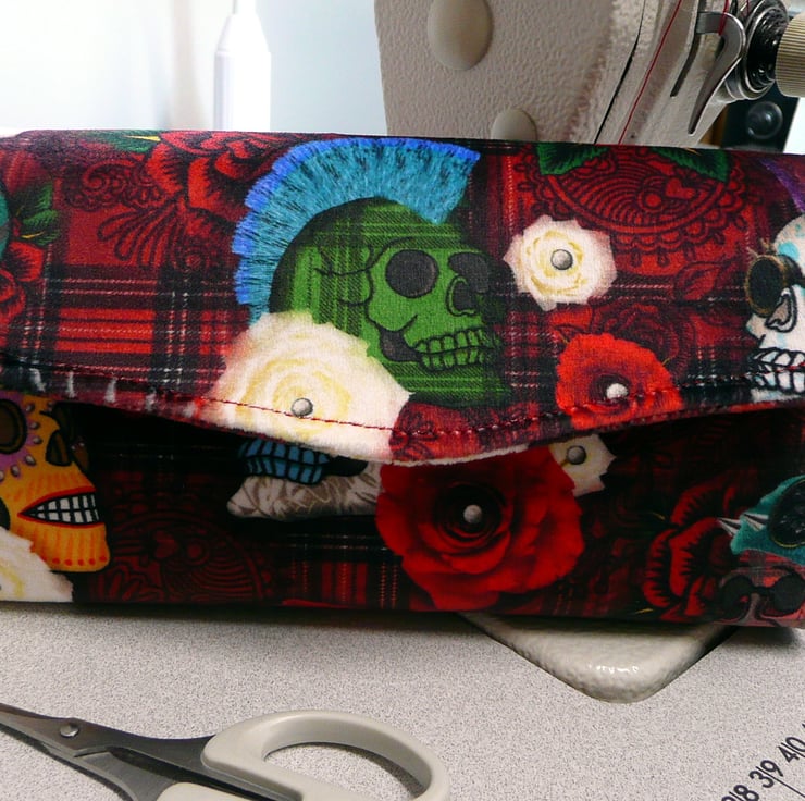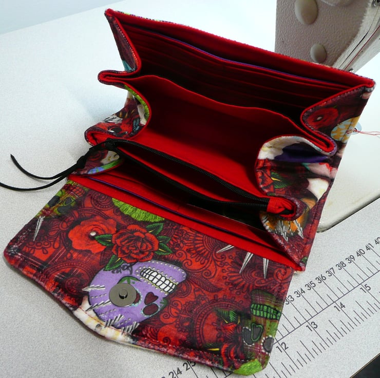 Punk skull purse, red velvet wallet, gothic purse, Halloweeen purse
