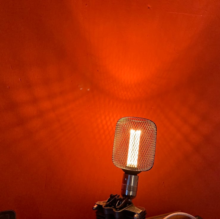 Upcycled/repurposed steampunk and industrial themed lighting. All with economical mains voltage LED lamps to help with your bill and save the planet!