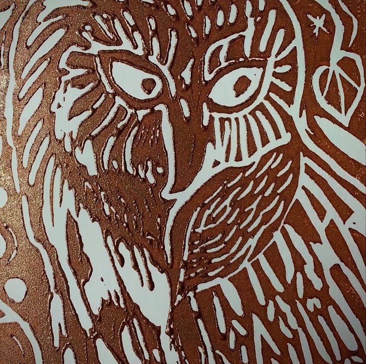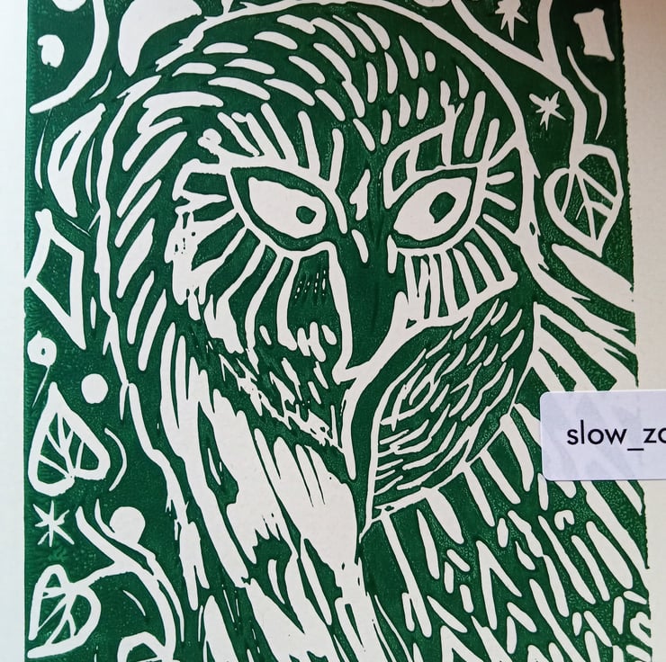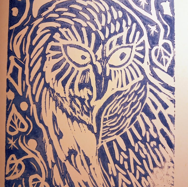 I use the Wiltshire countryside as the inspiration for my linocuts. I particularly love the birds that visit my garden. Every night I hear the owls calling but rarely see one.