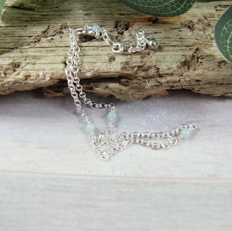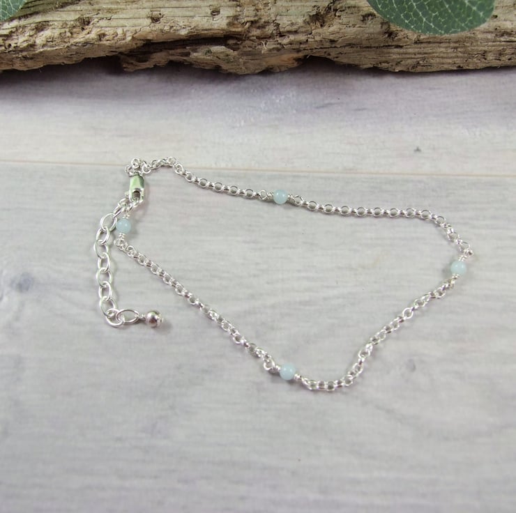 Anklet, sterling silver and amazonite gemstone ankle bracelet. Adjustable fit 9-11 inches. If you would like a shorter chain please let me know what length you would like and I can adjust for you.