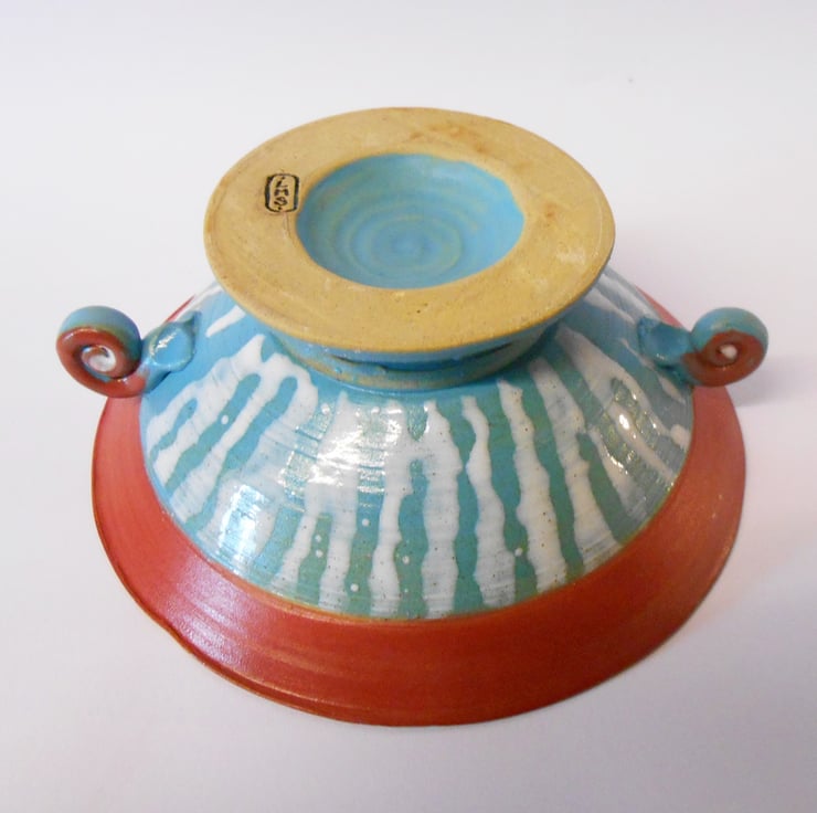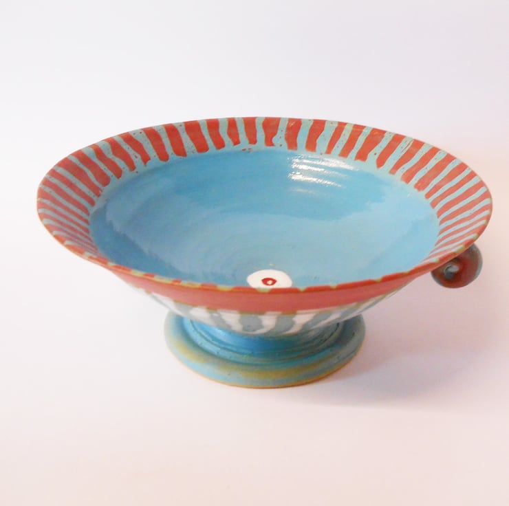 This is a Stunning wheel thrown stoneware clay stunning stemmed Bowl with "twizzles".