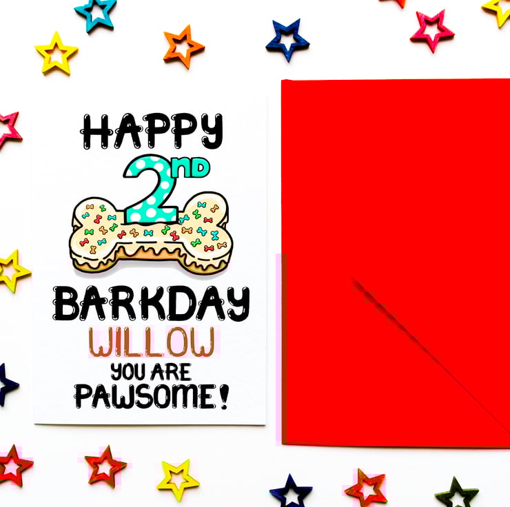 A cute second Birthday card for your dog, Fur Baby. Make extra special by adding their name, for you of course unless your dog is super talented and can read!
