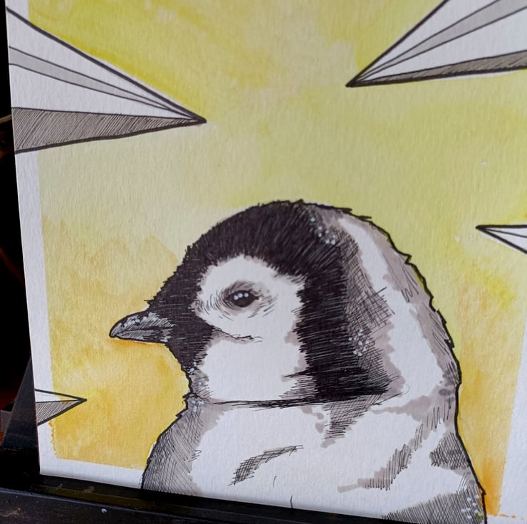 pro markers, watercolour, deep lasting love for waddling penguins,