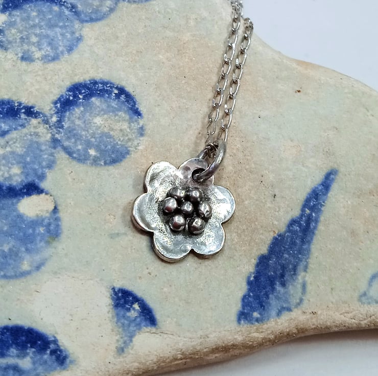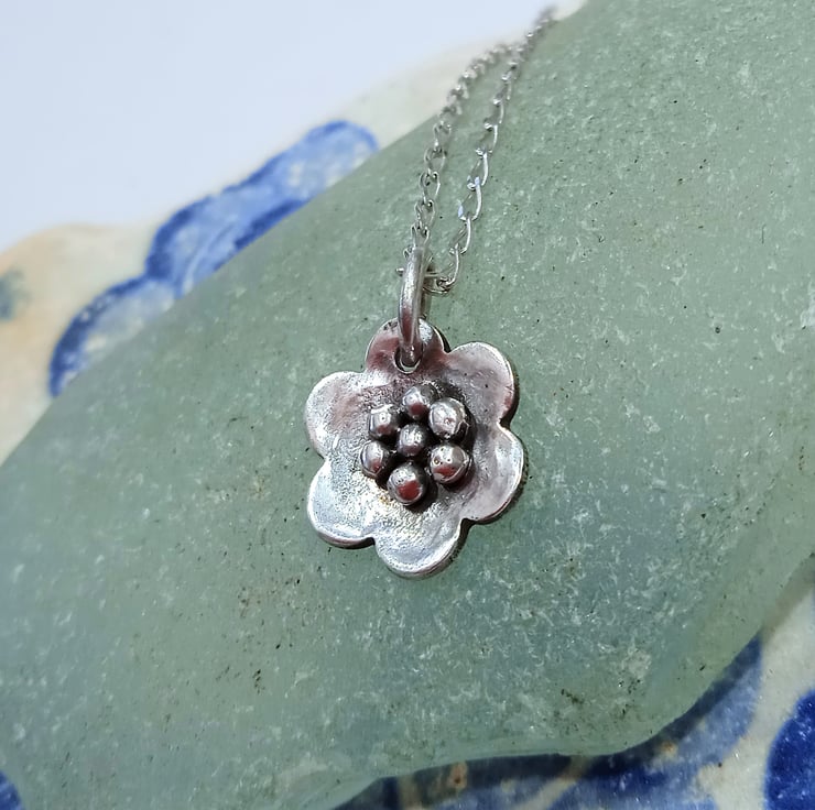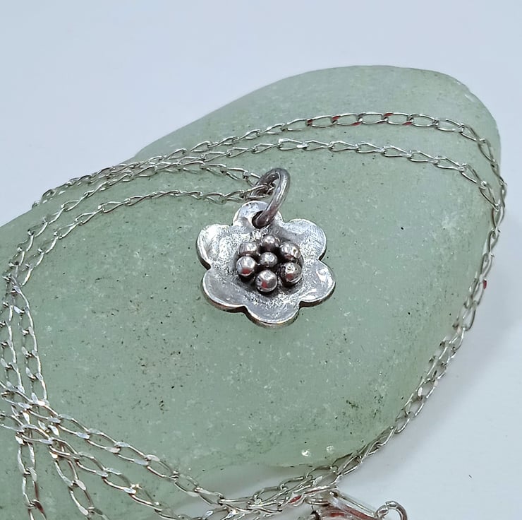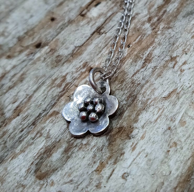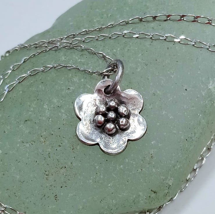 I have handcrafted this beautiful tiny pendant from 100% recyctled sterling silver cut into a flower shape.