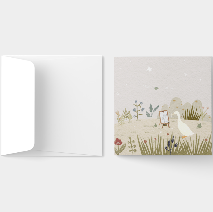 148mm square high quality greeting card printed on textured cardstock.