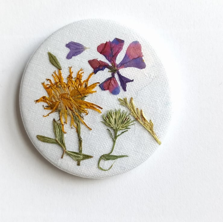 The collection of wild flowers were collected over the summer, pressed and dried and now beautifully arranged to keep forever as magnets. In this collection there are daisies, geraniums and common daisy.