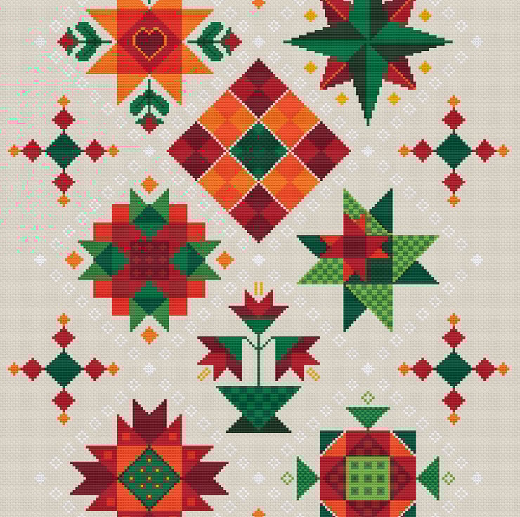 Wonderful rustic Christmas chart using traditional American quilt design chart PDF in high resolution and consists of 16 pages of A4, so you will need a large piece of stitching fabric too, attached is a sample image of the fabric to use with a rustic oatmeal flecked colouring to add to the traditional feel. 043F
