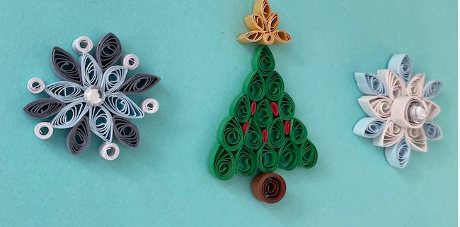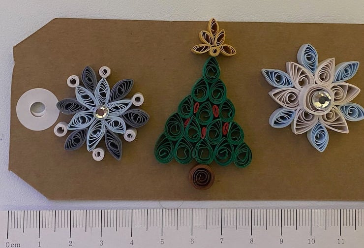 A set of 3 Mini Quilled hand made Christmas Decorations.