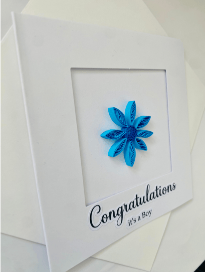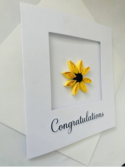 Handmade quilling cards, featuring a striking flower design is crafted from paper strips creating a 3D effect.