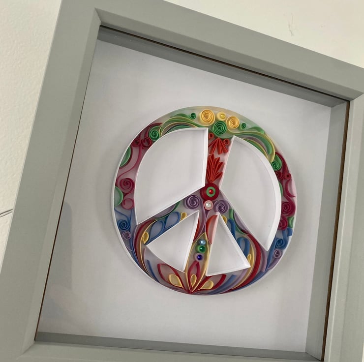 Mounted in a quality Shadow Box Frame this item has been made by hand from small pieces of rolled paper which is an art form called Quilling.