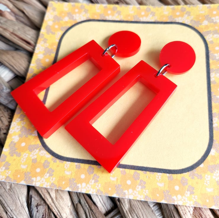I have made these fun 1960's inspired earrings in resin, using a gorgeous vibrant red colour.