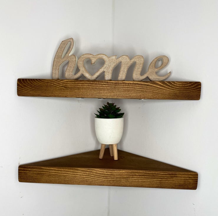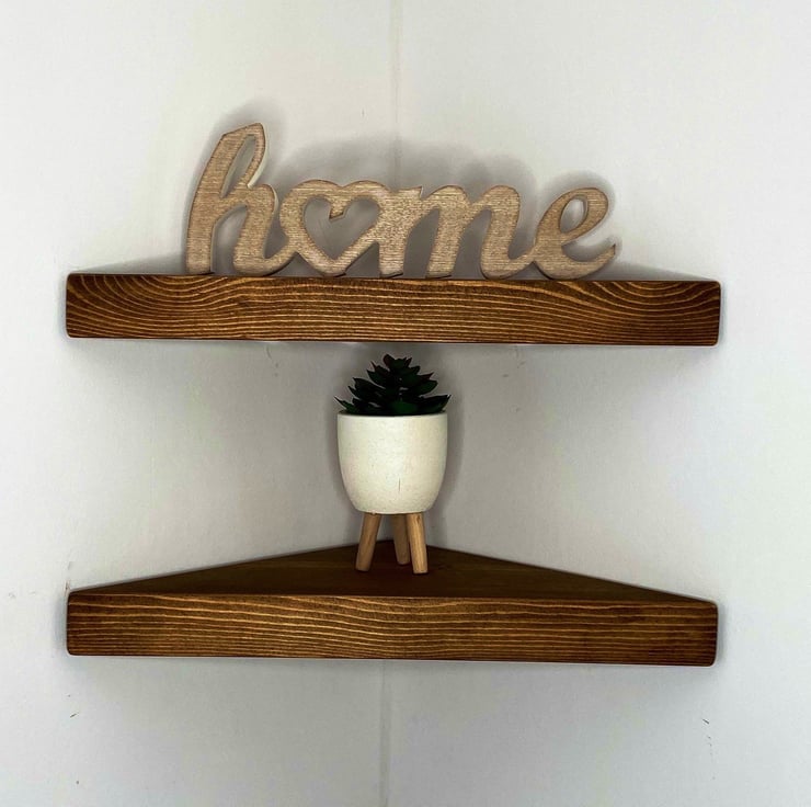 Our super chunky corner shelves are made from responsibly sourced timber creating a wonderfully rustic look. These shelves are around 4.4cm thick. We use the highest quality kiln dried timber to help minimise any twisting, bowing or cupping.