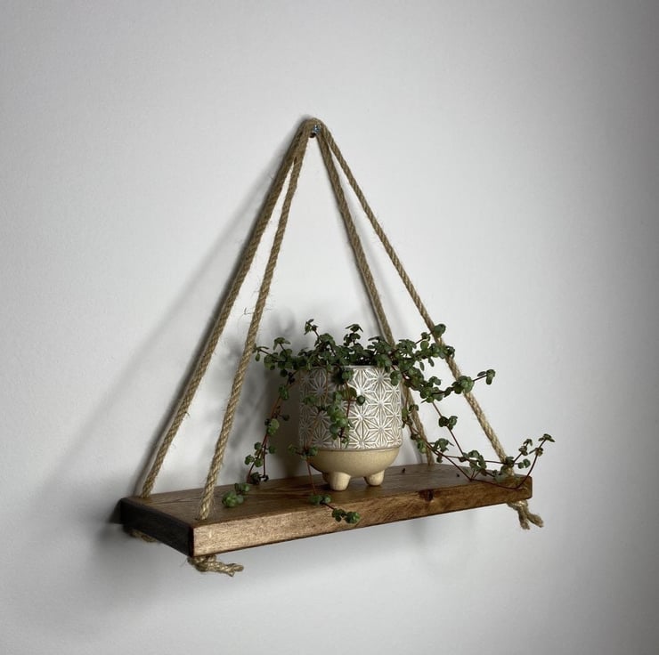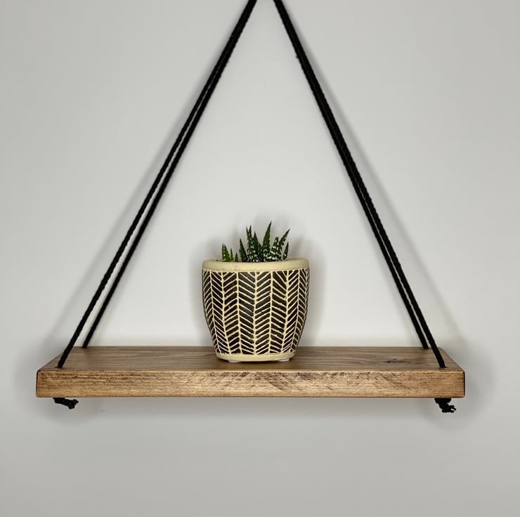 Hanging Wooden Shelf Black Cord Rope Jute Rustic Shelf Unique Shelf Dining Bedroom Kitchen Living Shelves Rope Shelf Wall Shelf gift
