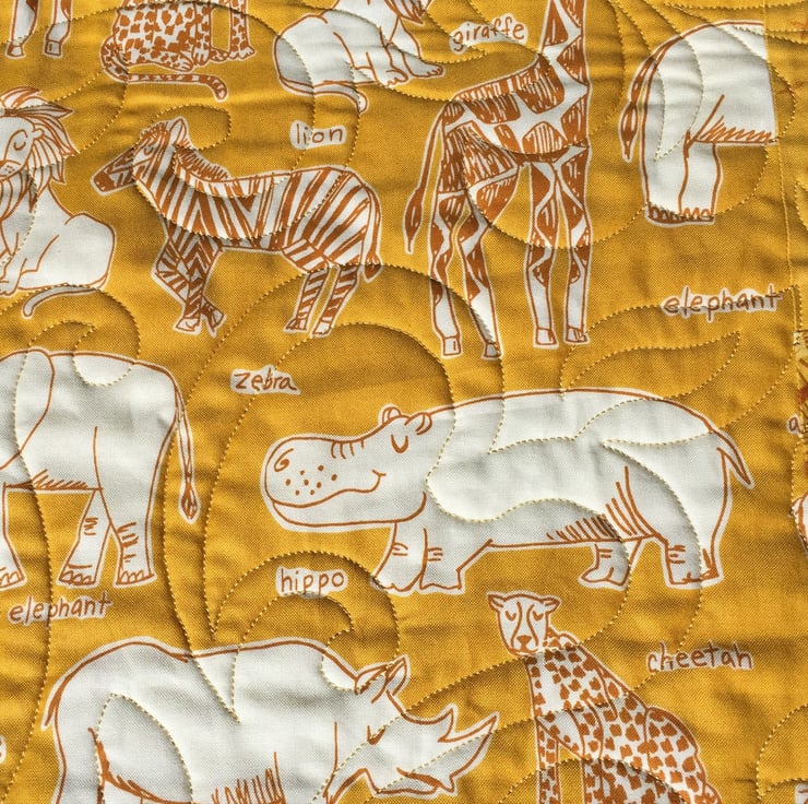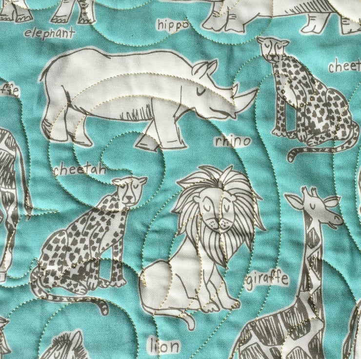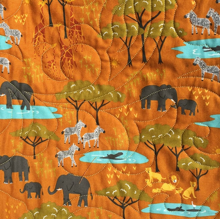 The quilt has been professionally quilted by Lismore Quilting and the all over pattern of foliage and elephants creates a beautiful swirling pattern of movement and texture.