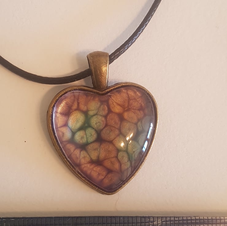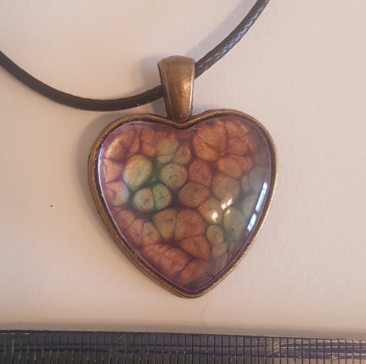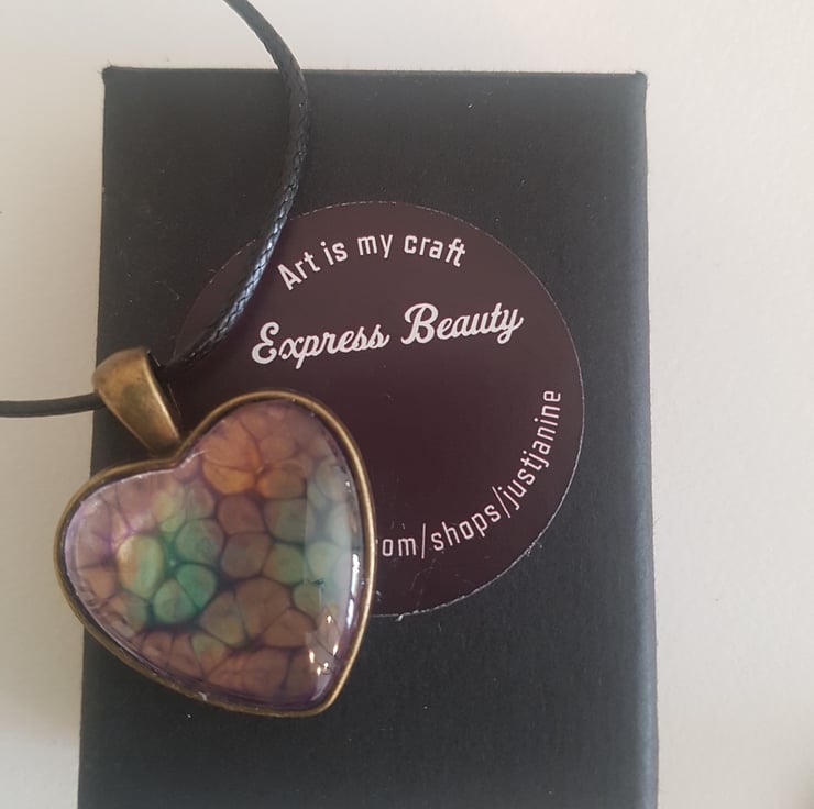 heart pendant comes with 18 to 20"cord and a cute eco gift box. Unique honeycomb effect made with prisme paint.