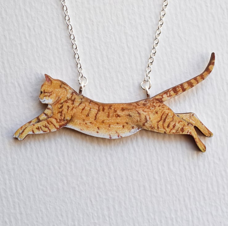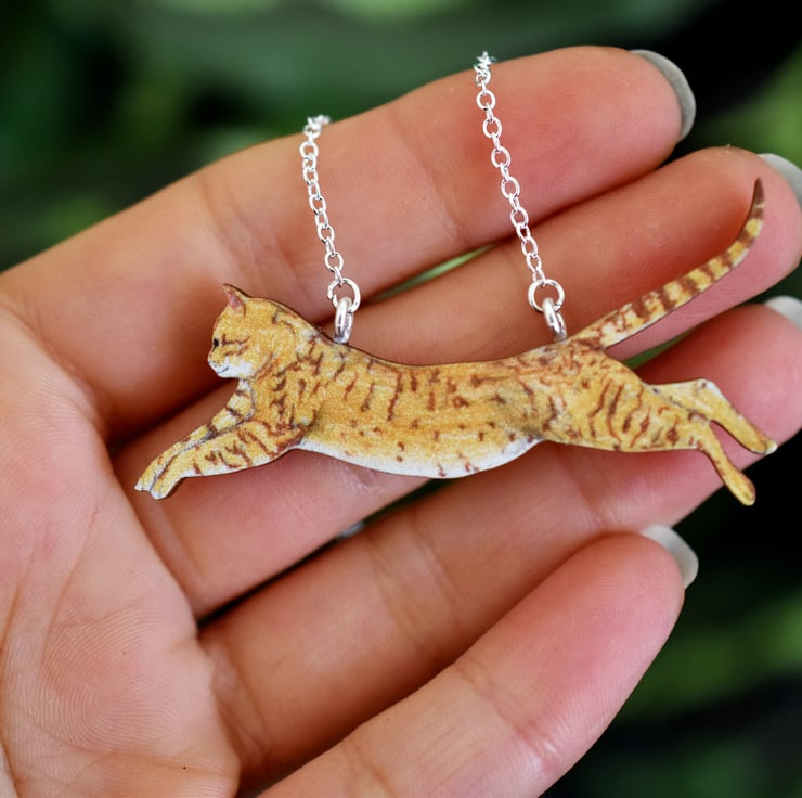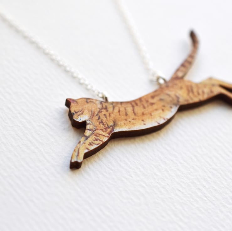 My sweet little tabby was originally hand drawn on shrink plastic and later scanned and reproduced on to sustainably sourced wood for me within the UK.