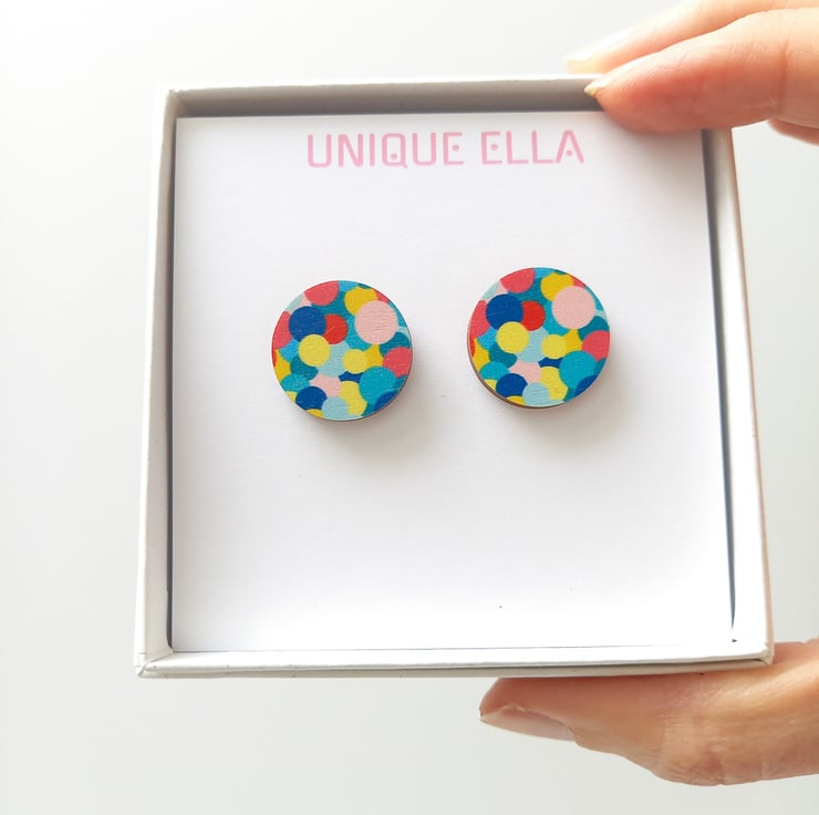 These unique design studs are made from the highest quality PEFC & FSC certified Finnish plywood and the pattern is printed with ecological printing ink and sealed with varnish