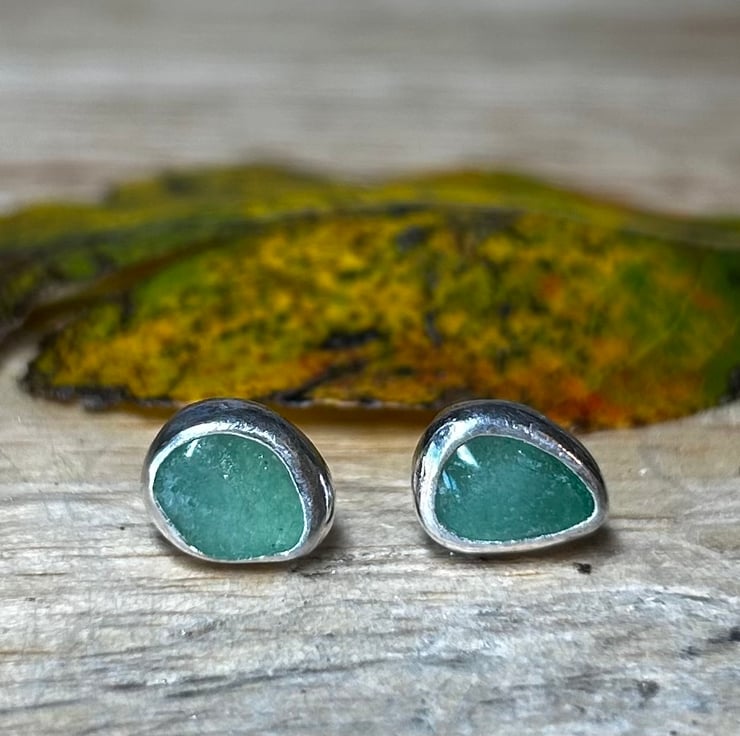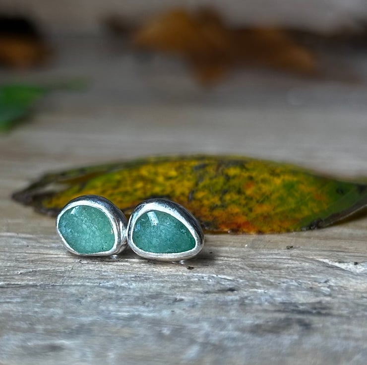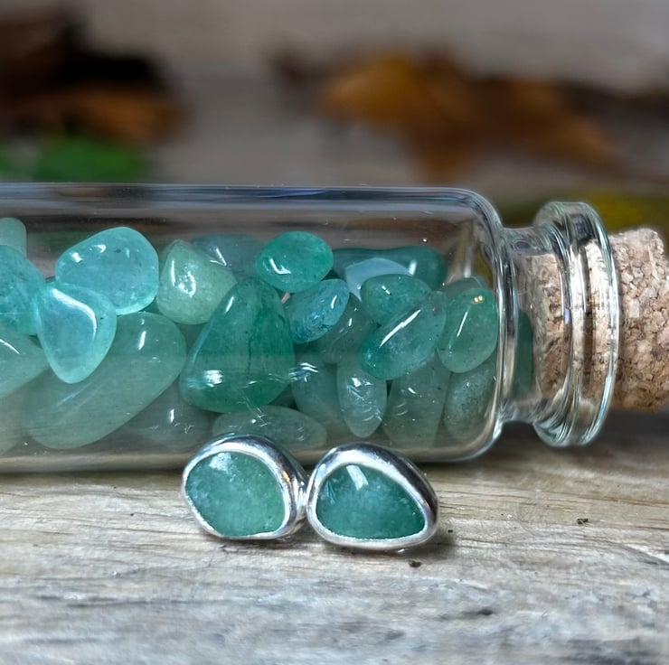 beautiful and unique handmade fine and sterling silver Aventurine gemstone stud earrings. Aventurine is said to useful in relieving migraine and soothing the eyes. is a soother and helps with relaxation. It relieves tension and encourages independence, courage and serenity. Gives adventure in love and sport.