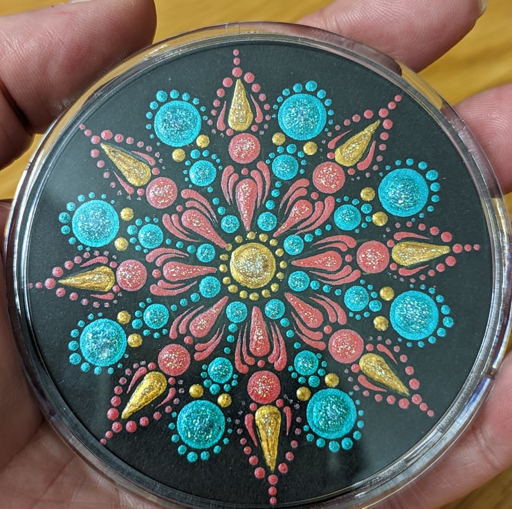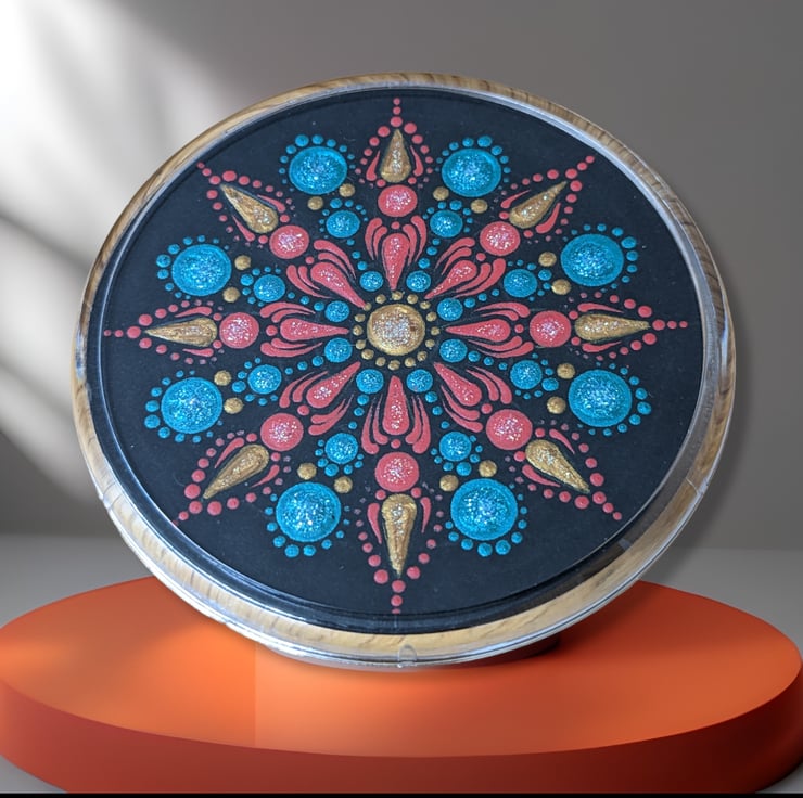 Beautiful hand painted dot mandala coaster with a diameter of approx 3 1/2 inches. This piece of art would make a lovely home decor piece or a wonderful addition to your dining set for you or as a lovely gift.