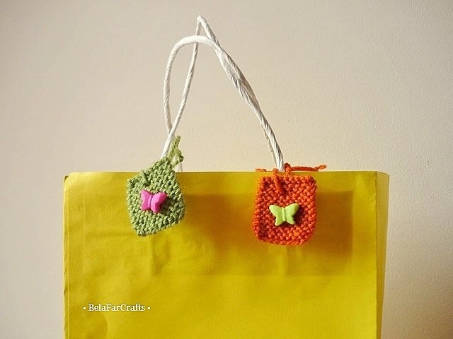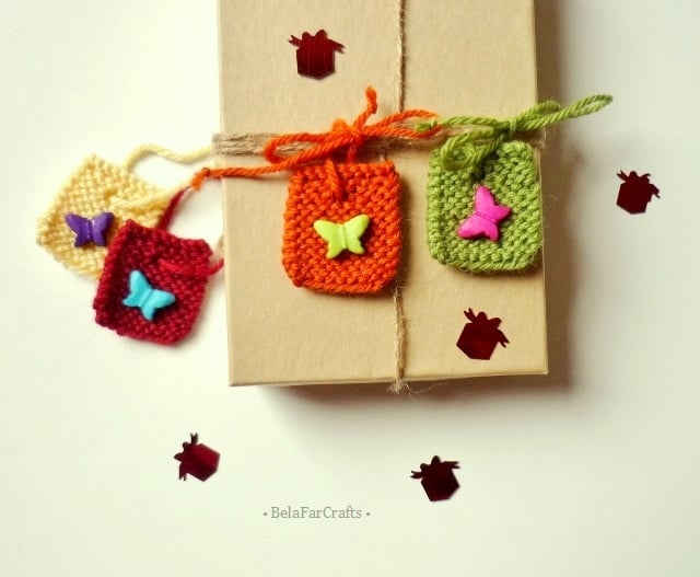 I hand knitted the tags using fine wool blend yarns and fine needles. I then sewed ornamental plastic beads for more cuteness. They measure 3 x 3.5cm (1.5in) and come with some yarn attached.