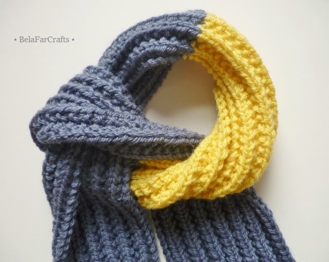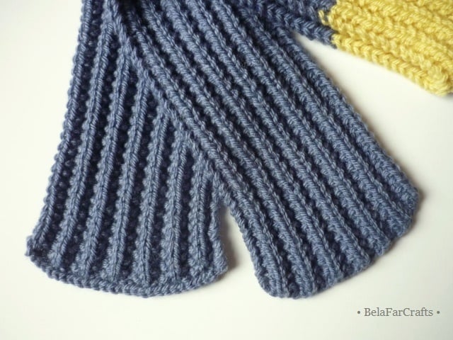 I used acrylic/wool blend yarns for the scarf and hat and merino wool for the bows.