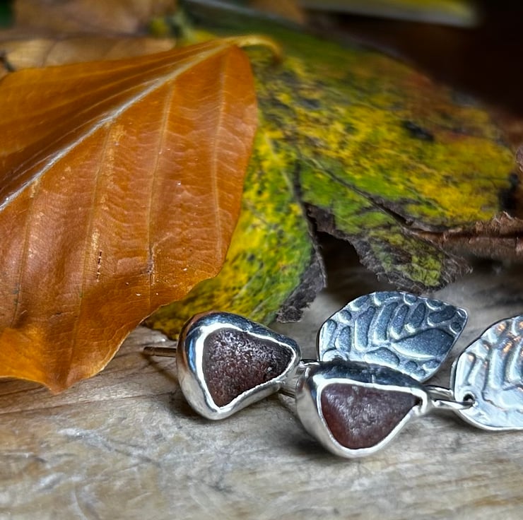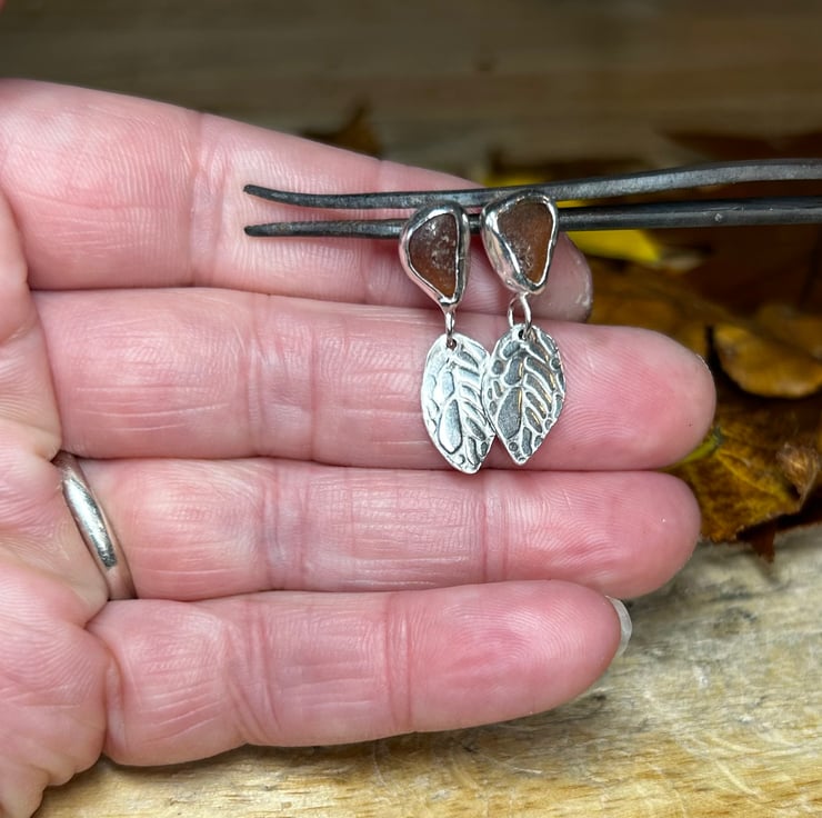 These gorgeous and unique handmade dangle earrings with pieces of dark amber welsh sea glass have been handcrafted using fine and sterling silver. I've taken inspiration from my favourite season and created a lovely leaf detail to compliment the autumnal colours of the amber in the sea glass. Will come in a lovely white jewellery box which will be wrapped with twine and lavender.