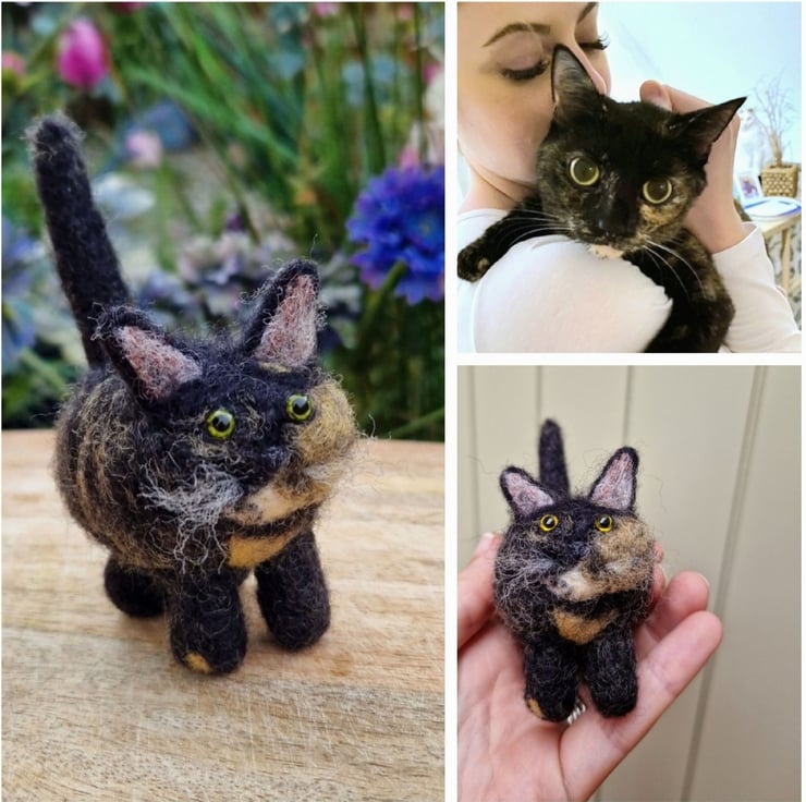 Needle Felted Cat Portrait - Custom Felt Cats, Calico Tricolour Tortoiseshell