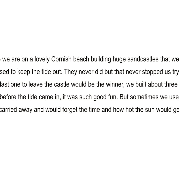 An original illustrated watercolour print of children on a Cornwall Beach with a short story for charity. Presented and signed in a mounted Grey wooden frame with a grain finish 10" x 8" (print: 8" x 6") 22mm wide and 22mm deep. Also presented unframed, fully mounted ready for your own frame. (10" x 8" Mount-Print 8" x 6")