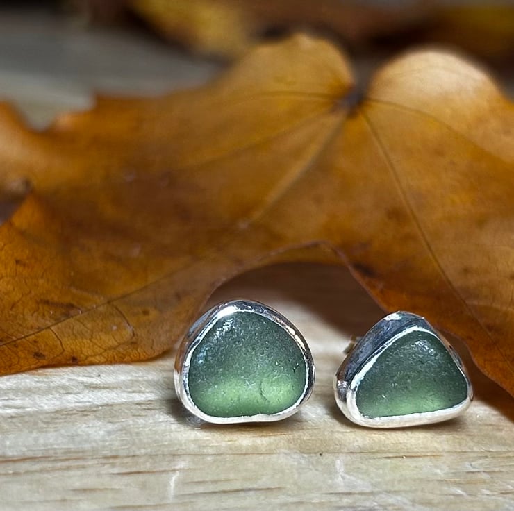 Beautiful handmade stud earrings created using 100% recycled sterling and fine silver. I have used pieces of gorgeous light olive-green welsh sea glass which were foraged by myself from a beach in North Wales. These welsh sea glass studs are by far my most popular item and are perfect as a gift or a treat for yourself! Will come in a lovely white jewellery box which will be wrapped with twine and lavender.