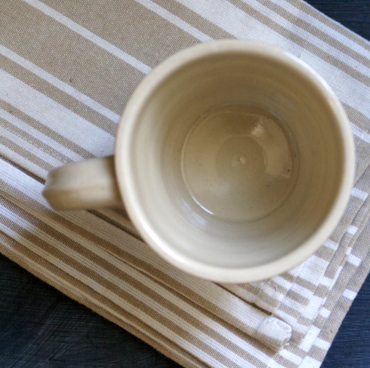 A sturdy pulled handle also supports the weight of the cup and its flat bottom will sit firmly on your table. This mug has also been hand stamped with the Little Wren Pottery seal on the bottom to marking it out as a handcrafted item.