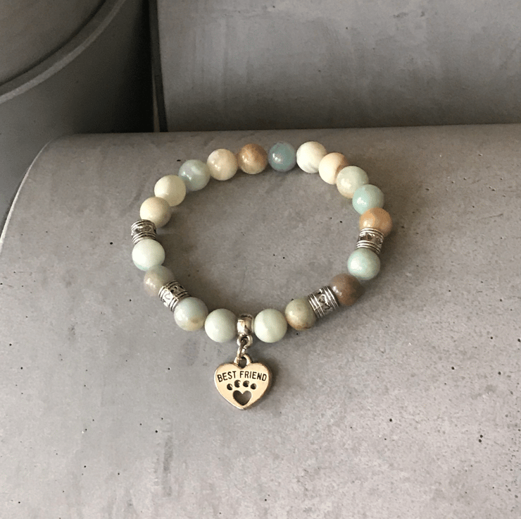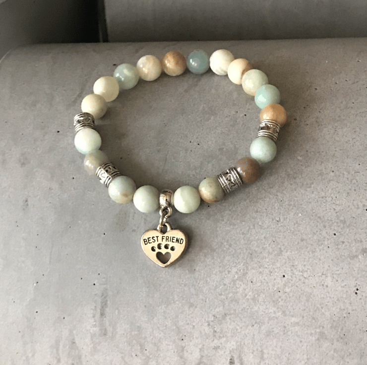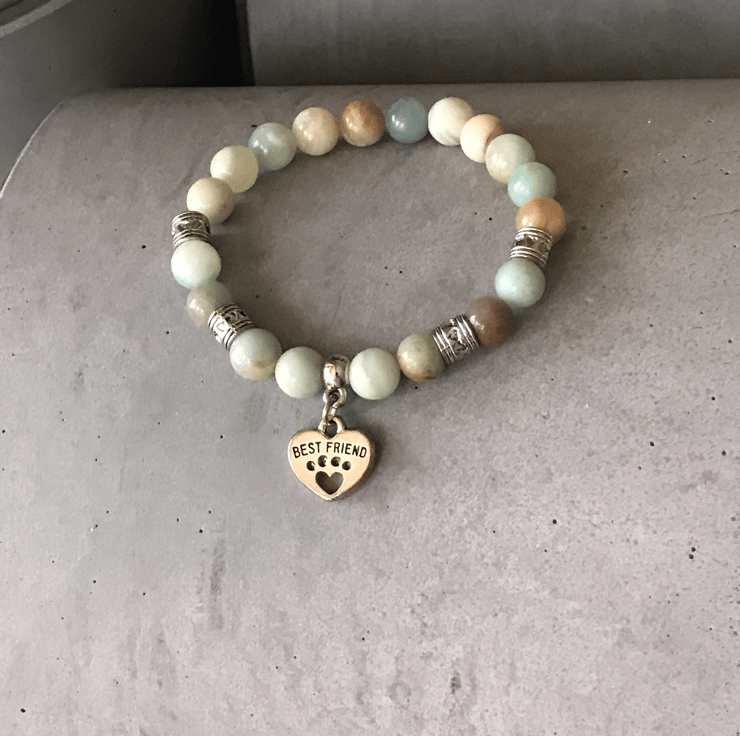 Beautiful Love Heart Dog Cat Paw Best Friend Amazonite Crystal Healing Bracelet