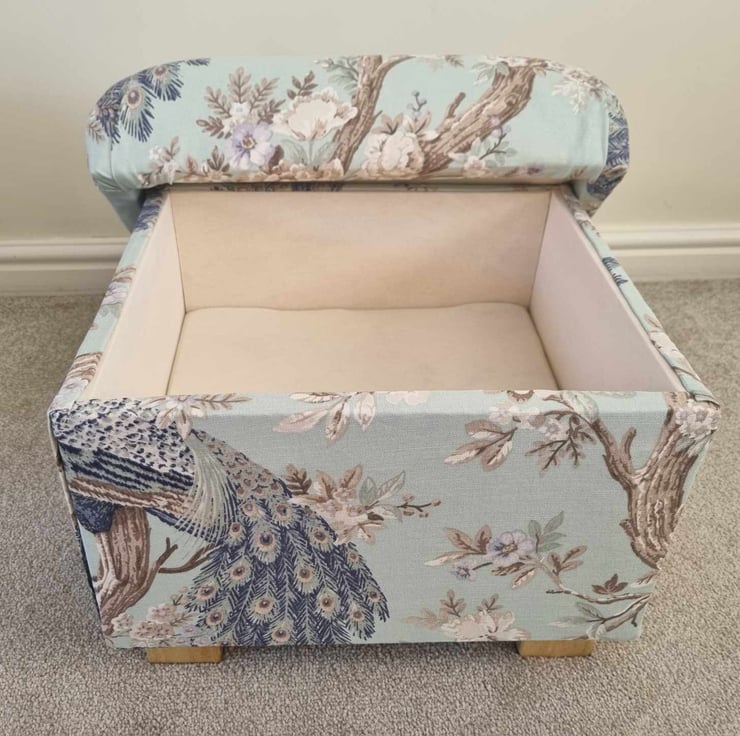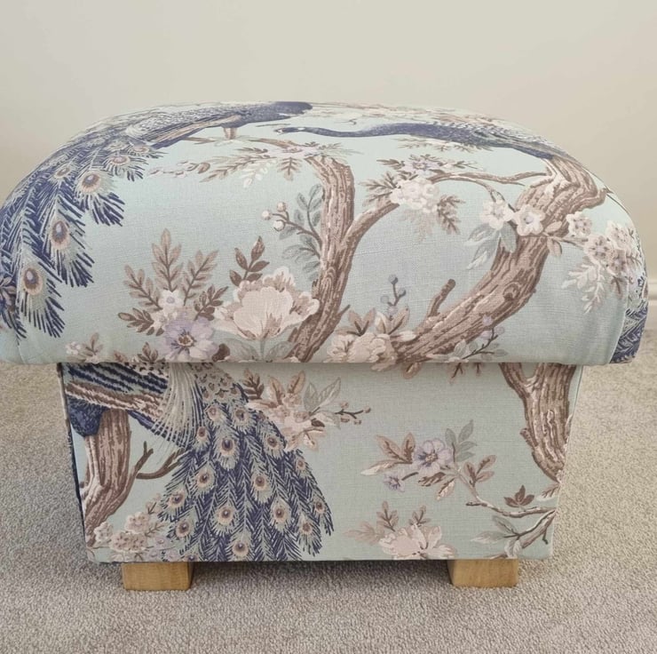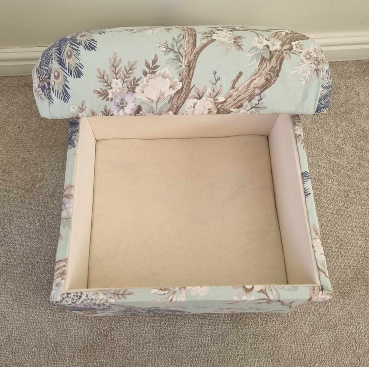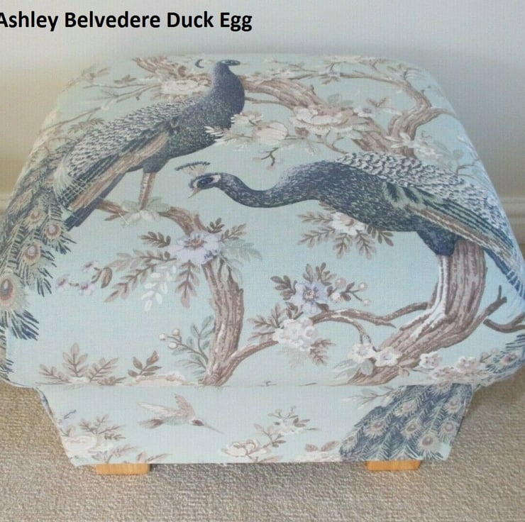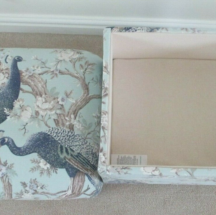 I am a professional upholsterer with over 33 years and have made this storage footstool myself, using Laura Ashley Belvedere Duck Egg fabric.
