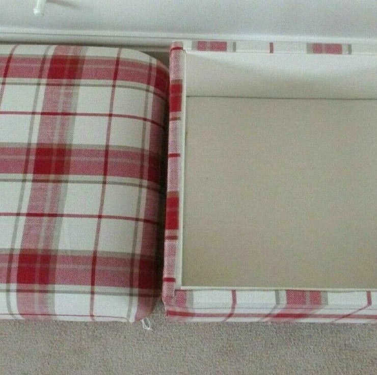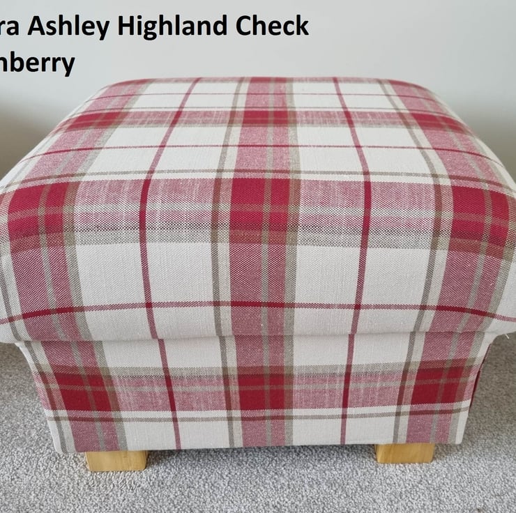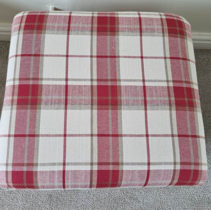 I am a professional upholsterer with over 33 years and have made this storage footstool myself, using Laura Ashley Highland Check Cranberry Red Check fabric.