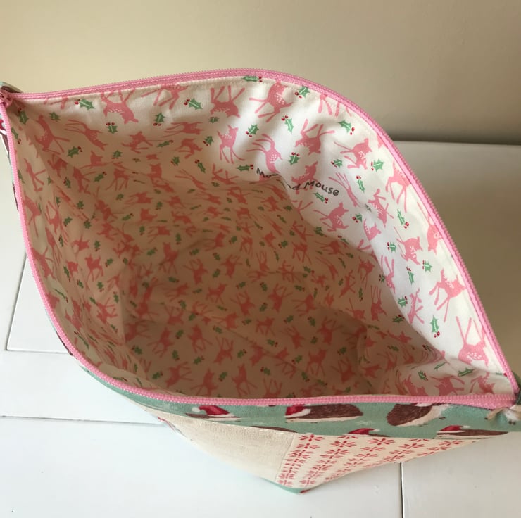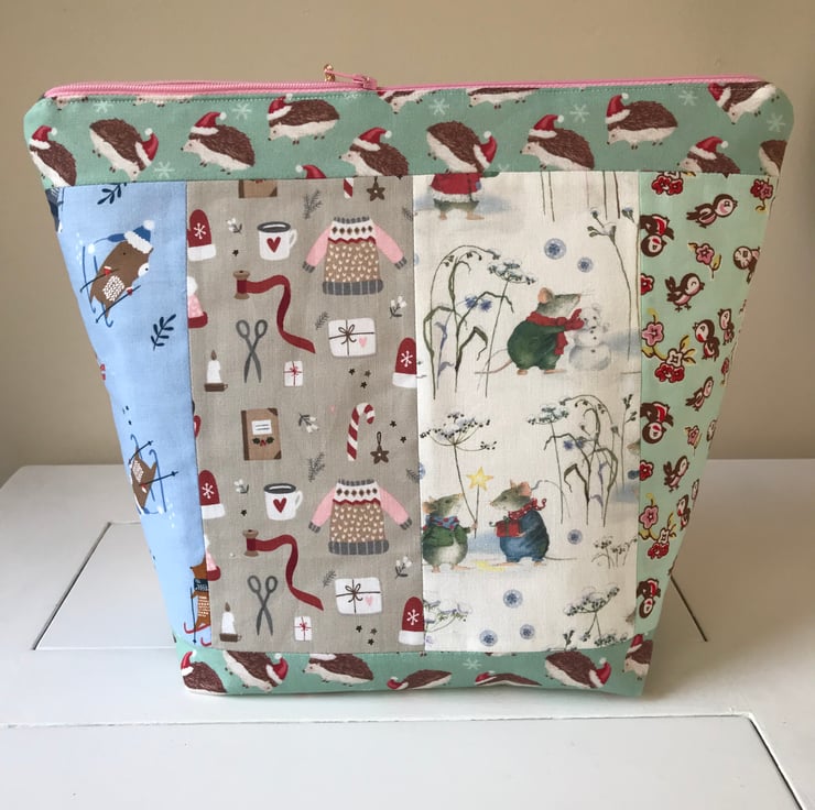 The bag is fully lined with a lovely festive print and has a zip closure to keep all your work safely inside.